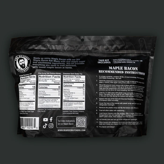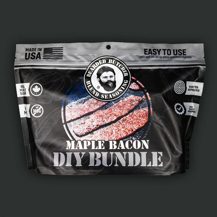 - 1 pack of Bearded Butcher Maple Seasoning (2.15 lbs) to season 25 lbs of meat