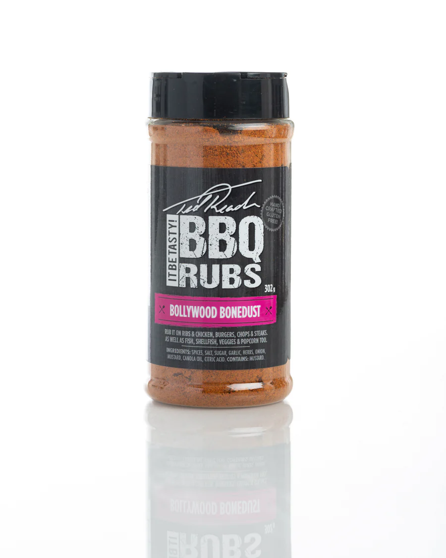 One of the key ingredients to my Original Bone Dust Seasoning Rub is mild yellow Indian curry powder which provided a background spice blend that gave Bone Dust its character. Bollywood Bone Dust is an extension of Bone Dust with a large increase in the Indian spices used in Bone Dust. It gives that boost of Indian spice to all you grill or barbecue. It’s Very Very Good!